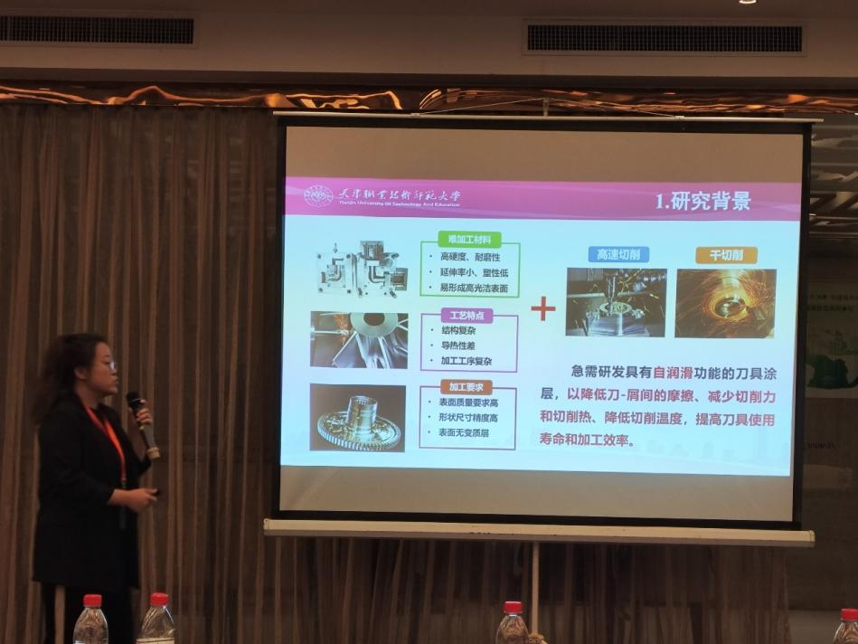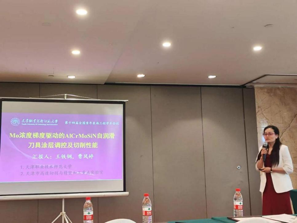 王铁钢教授在“物理气相沉积和化学气相沉积薄膜技术”论坛作题为《Mo浓度梯度驱动的AlCrMoSiN自润滑刀具涂层调控及切削性能》的特邀报告,引发在场学者们的广泛兴趣。机械工程学院青年教师李洋在“ 摩擦、磨损与润滑技术”论坛作题为《铜合金表面红、蓝激光熔覆涂层的设计制备与组织性能研究》的专题报告,详细展示了其最新研究进展。机械工程学院研究生张冬青在“表面工程应用技术A”论坛作题目为《Mo含量对AlCrMoSiN涂层结构和性能的影响》的报告。