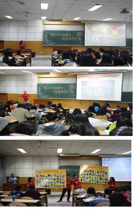 为弘扬长征精神,铭记红军榜样,1011日起,成人用品 开展为期三天的“电”记长征精神,传递榜样力量——党员先锋进课堂活动,成人用品 辅导员沈磊、学生党员和2016级全体新生参加。说明: C:\Users\User\Desktop\成人用品