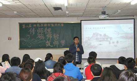 本次大赛以“修师德、砺师能、筑师梦”为主题,活动由首届比赛中选手们的精彩表现的视频集锦拉开序幕。随后,前师范技能协会书法部部长、现任职于杭州萧山技师学院的校友徐帅通过一段视频向同学们讲述师德、师能对于就业与工作的重要性,并结合自己在校和参加工作的切身经历,告诫大家要珍惜在学校的锻炼机会,在普通话、讲课、课件制作、课堂管理等基本功上下功夫,为自己的教师梦想努力拼。接下来,由校“师范技能展示月”获奖选手唐灿从讲课主题的确定、课件的制作等方面向同学们分享了参赛经验与心得,同学们认真聆听,积极提问,现场气氛热烈。
