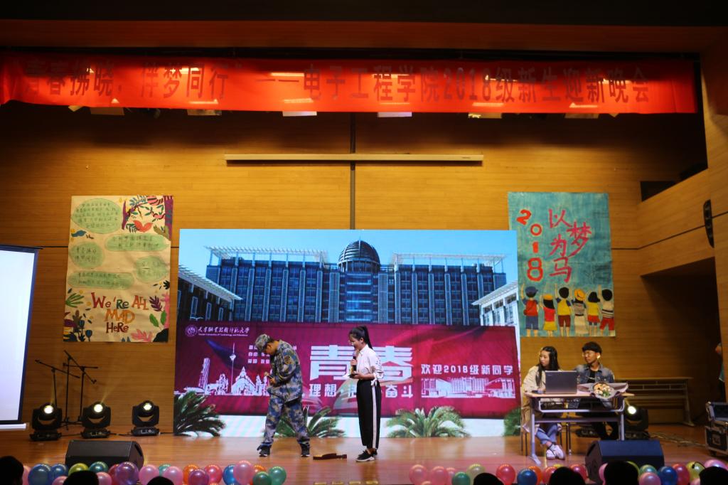 926日,成人用品 在小礼堂举办青春拂晓,伴梦同行” 2018级迎新晚会,院党委书记李春华、副书记刘娜、辅导员老师、军训教官以及2018级全体新生参加。