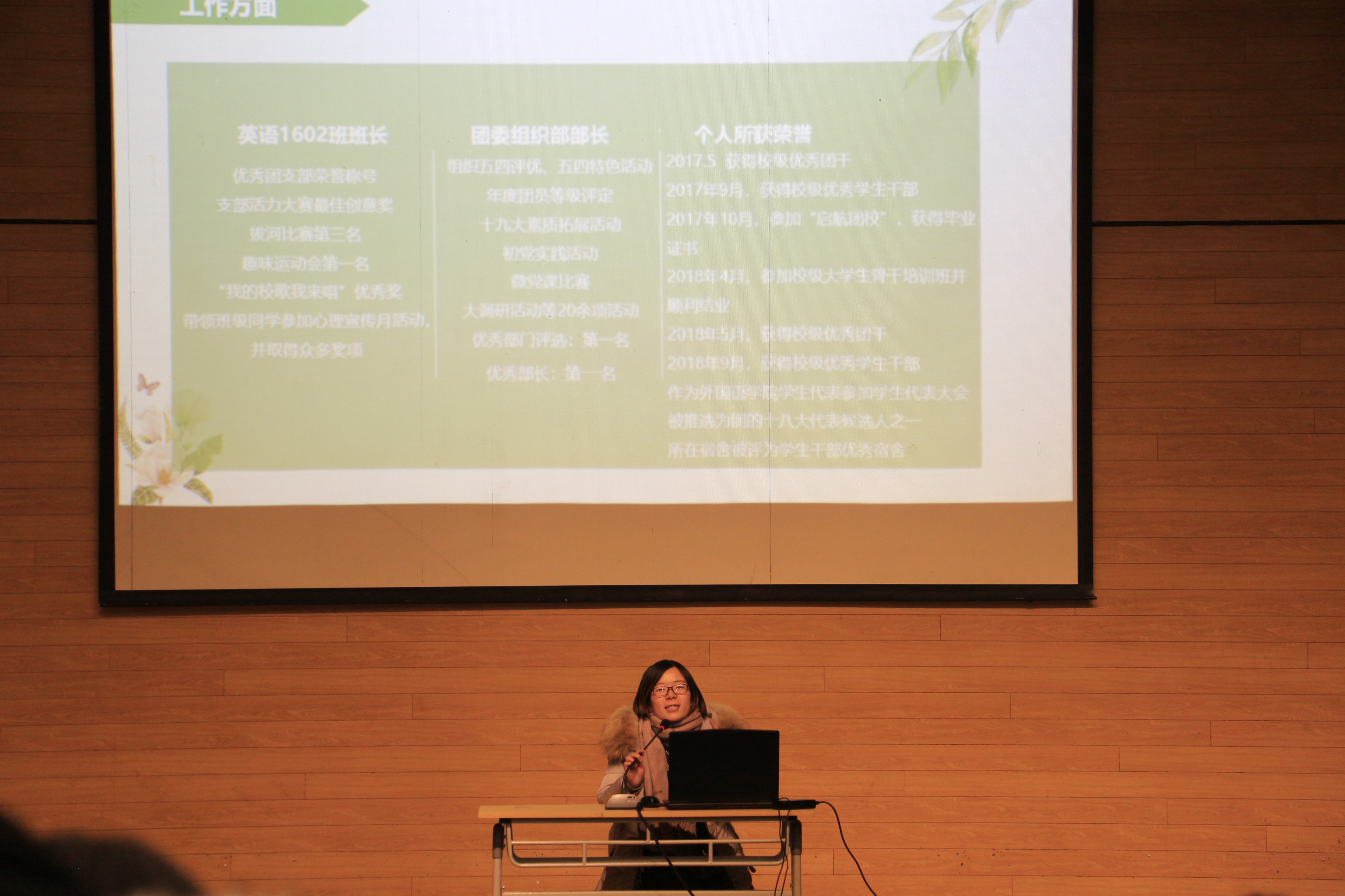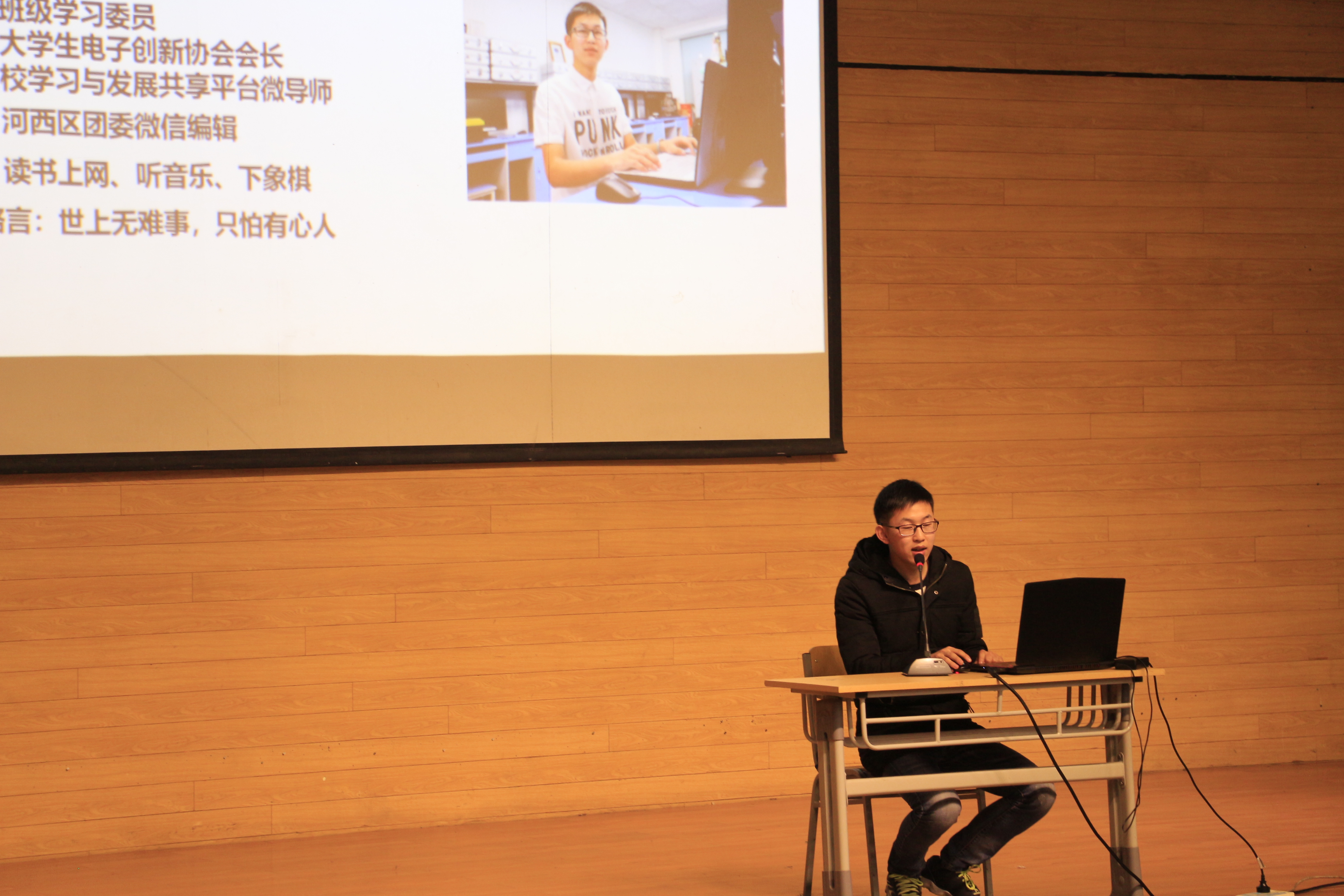 本次宣讲邀请到荣获国家奖学金、天津市人民政府奖学金、天津市优秀学生干部以及市级以上电子竞赛获奖的外国语学院学生会主席边亚丹、自动化与电气工程学院柴芳政以及成人用品