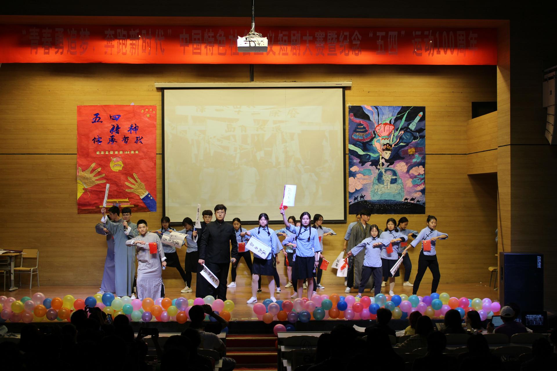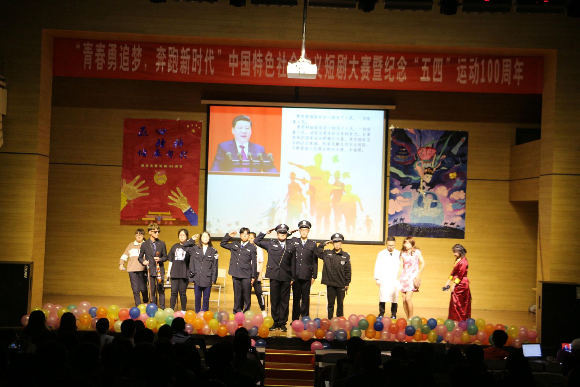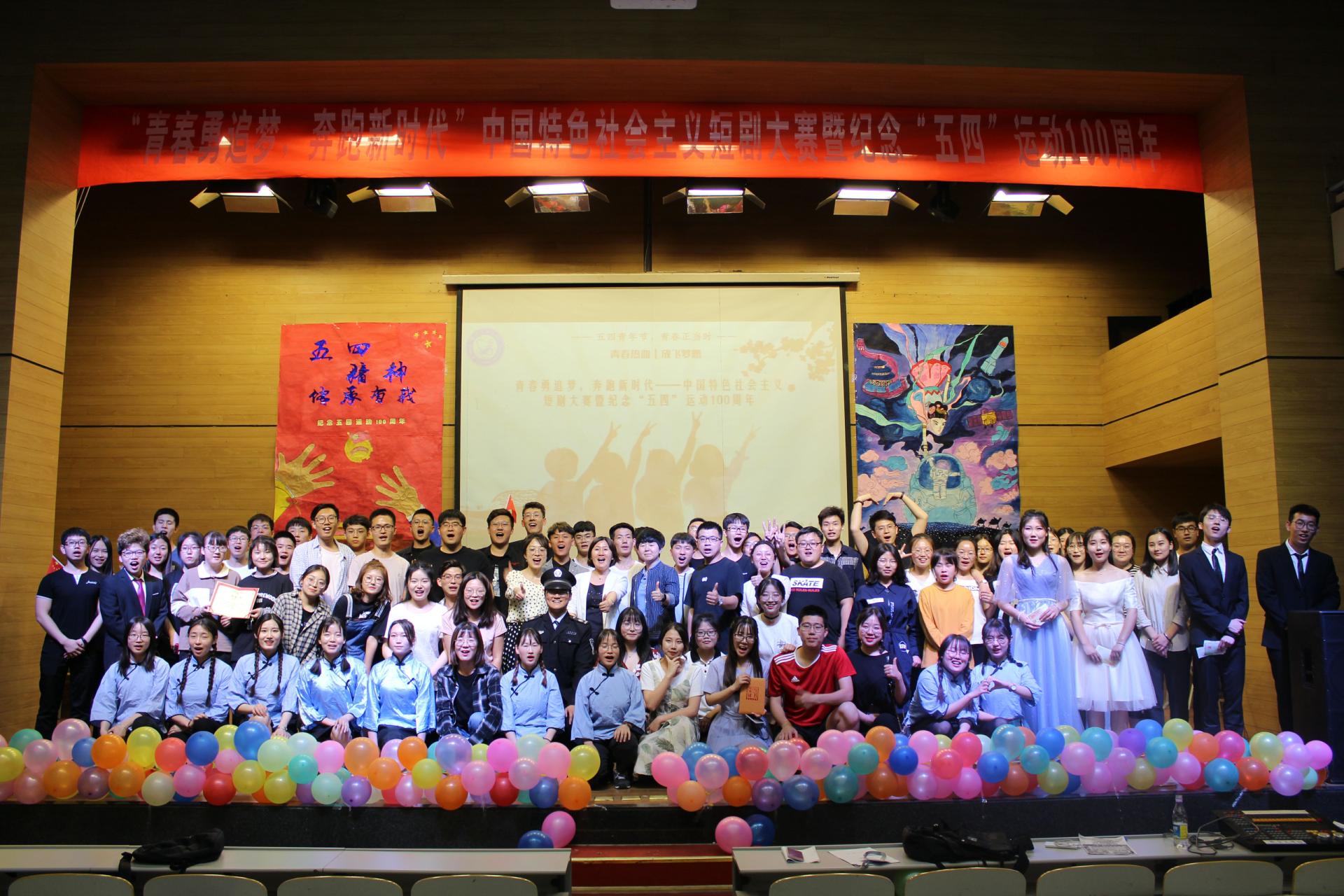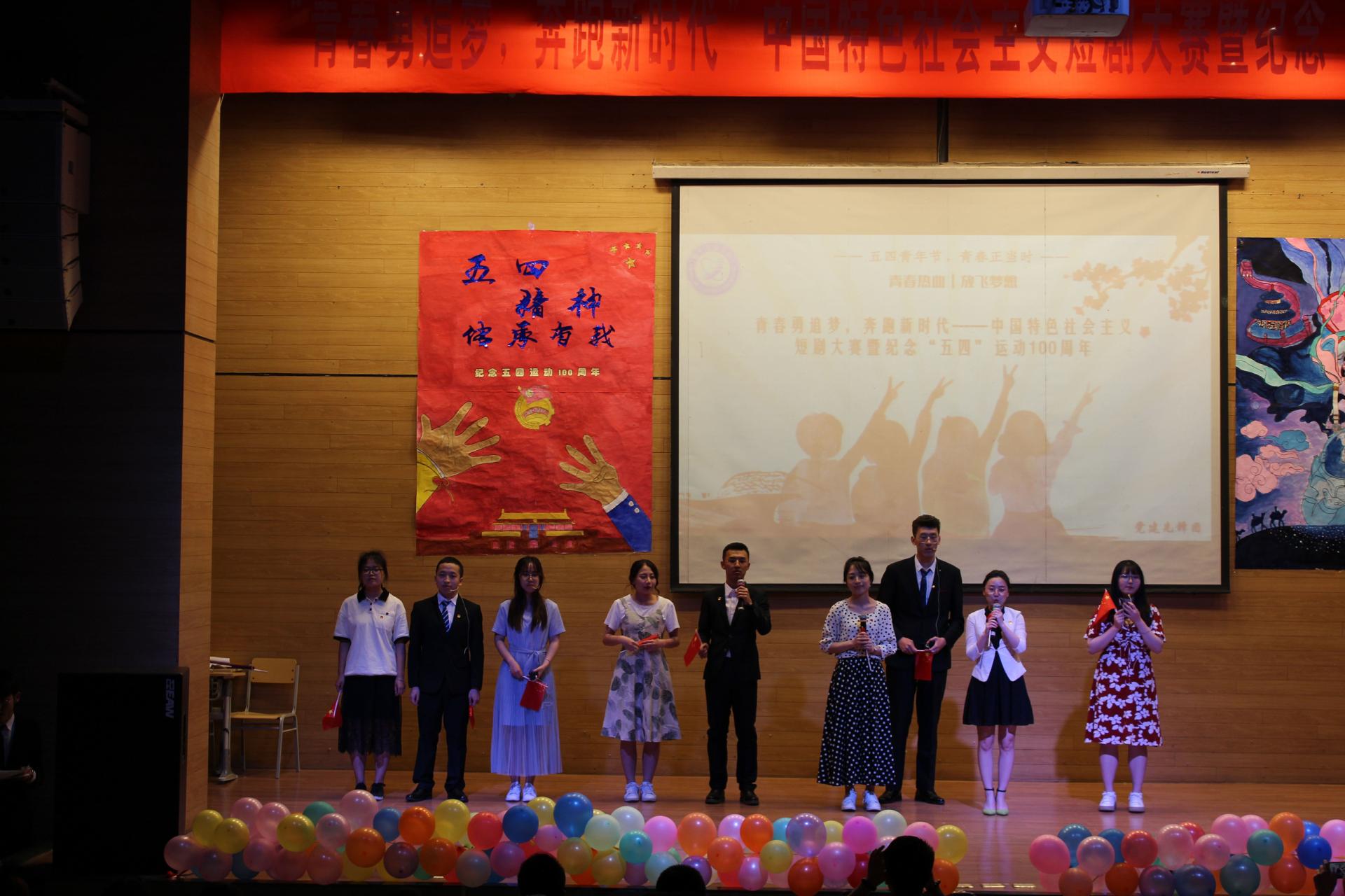在小礼堂举办了“青春勇追梦,奔跑新时代”中国特色社会主义短剧大赛暨纪念“五四运动”100周年,激发学生爱国情怀。院党委副书记刘娜、全体辅导员老师以及2018级学生参加。