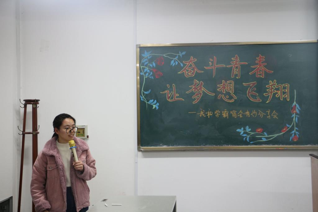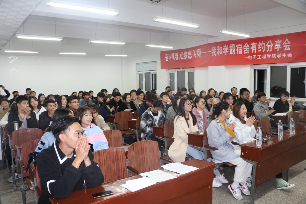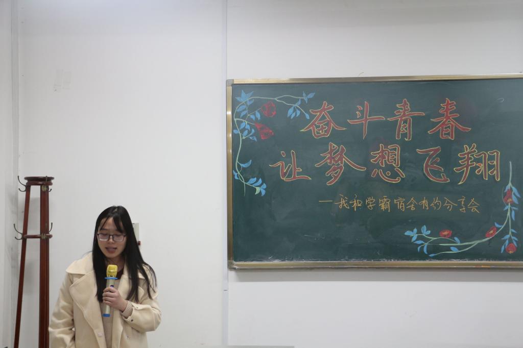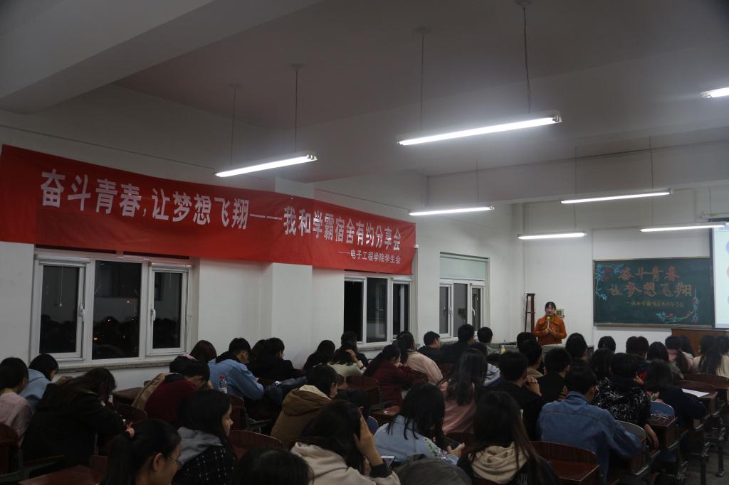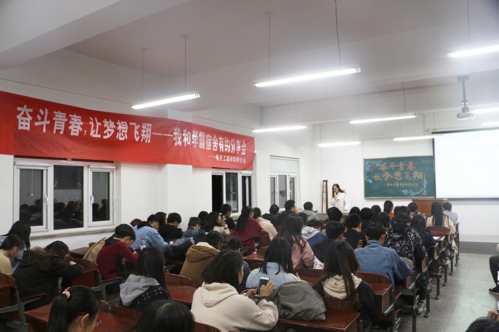 118日下午成人用品 在机电楼521举办了以“奋斗青春,让梦想飞翔”为主题的“我和学霸宿舍有约”分享会,发挥榜样引领作用,学院各年级学生代表参加。