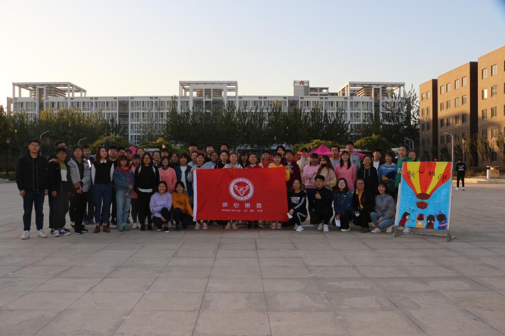 在镜湖广场举办“新心相印”心理团辅活动,提高大学生的心理健康水平。学院近170名学生参加。