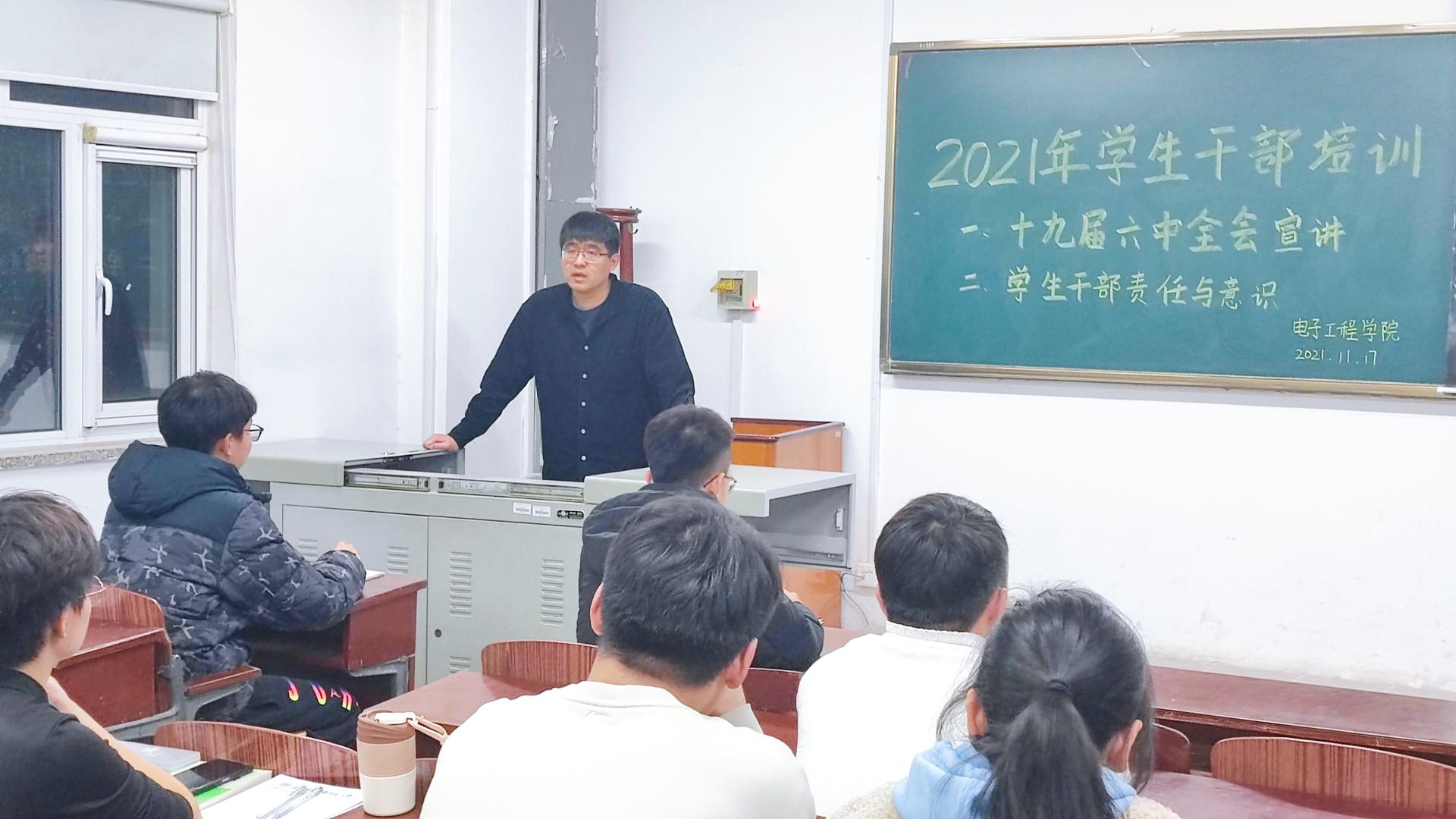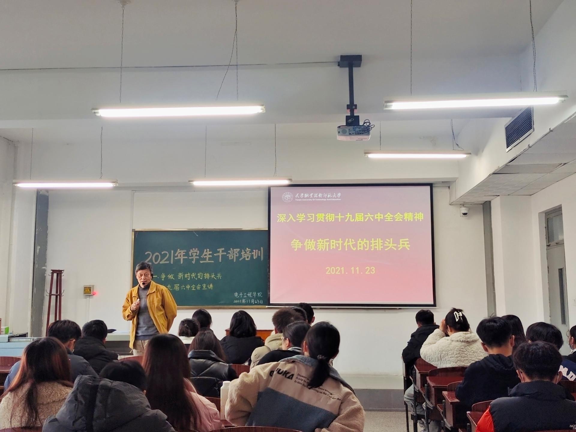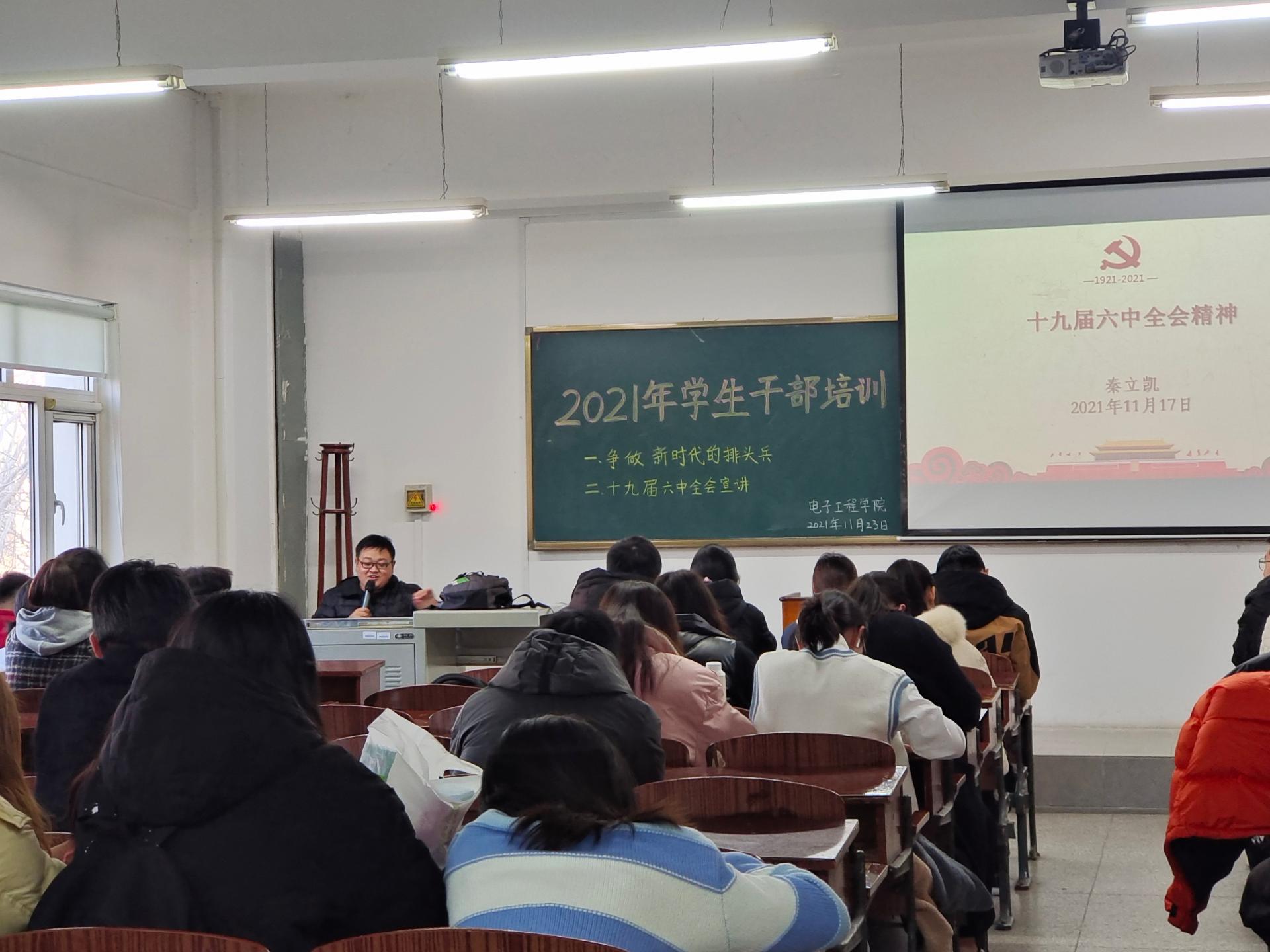 为了让学生干部们上好培训课,老师们精心备课、精细教学,确保大家学有所获。院党委书记程中进行了党的十九届六中全会精神专题宣讲,引导同学们从党的百年奋斗中看清楚过去我们为什么能够成功、弄明白未来我们怎样才能继续成功,从而更加坚定、更加自觉地践行初心使命,在新时代更好坚持和发展中国特色社会主义。院党委副书记仲伟邦讲解了学生活动的策划与实施,提出要精心策划、注重过程、及时总结,在策划和实施活动中提升自己的思维水平和执行能力。辅导员袁林介绍了办公软件的应用技巧,提升同学们的工作效率。辅导员王刚对大学生的共同心理特征进行了分析,引导同学们学会做自己的心灵导师。辅导员赵振彤通过分析大学生在职业生涯规划中面临的困惑,提出了相应的解决方法。辅导员薛丽讲解了新闻稿的撰写方法,提升同学们的写作能力。辅导员王钦通过讲解学生干部的责任与意识,提高组织、领导、沟通、表达能力。辅导员国海丁对学生干部应具备的礼仪进行培训。马克思主义学院教师秦立凯进行了党的十九届六中全会精神专题宣讲。