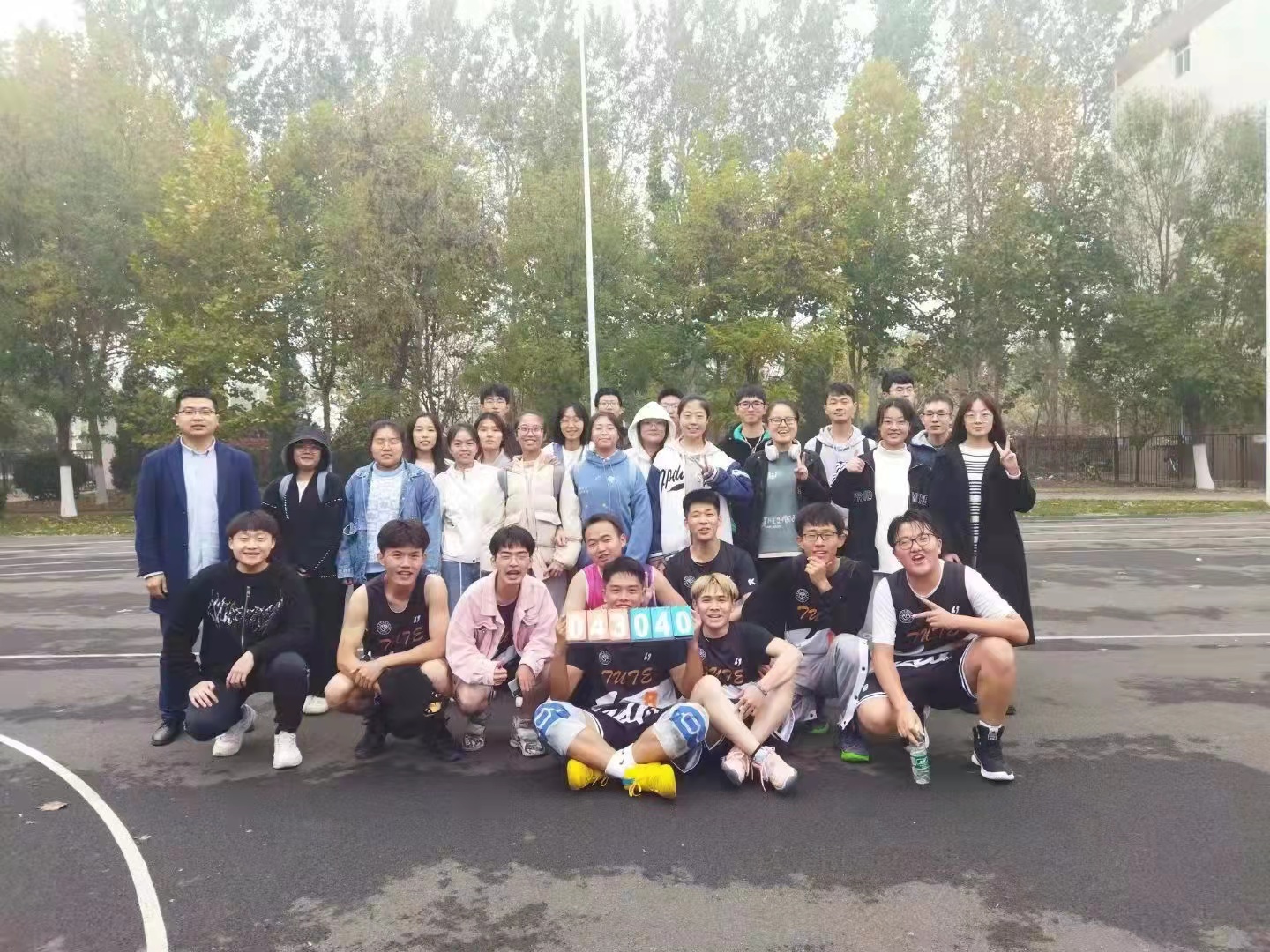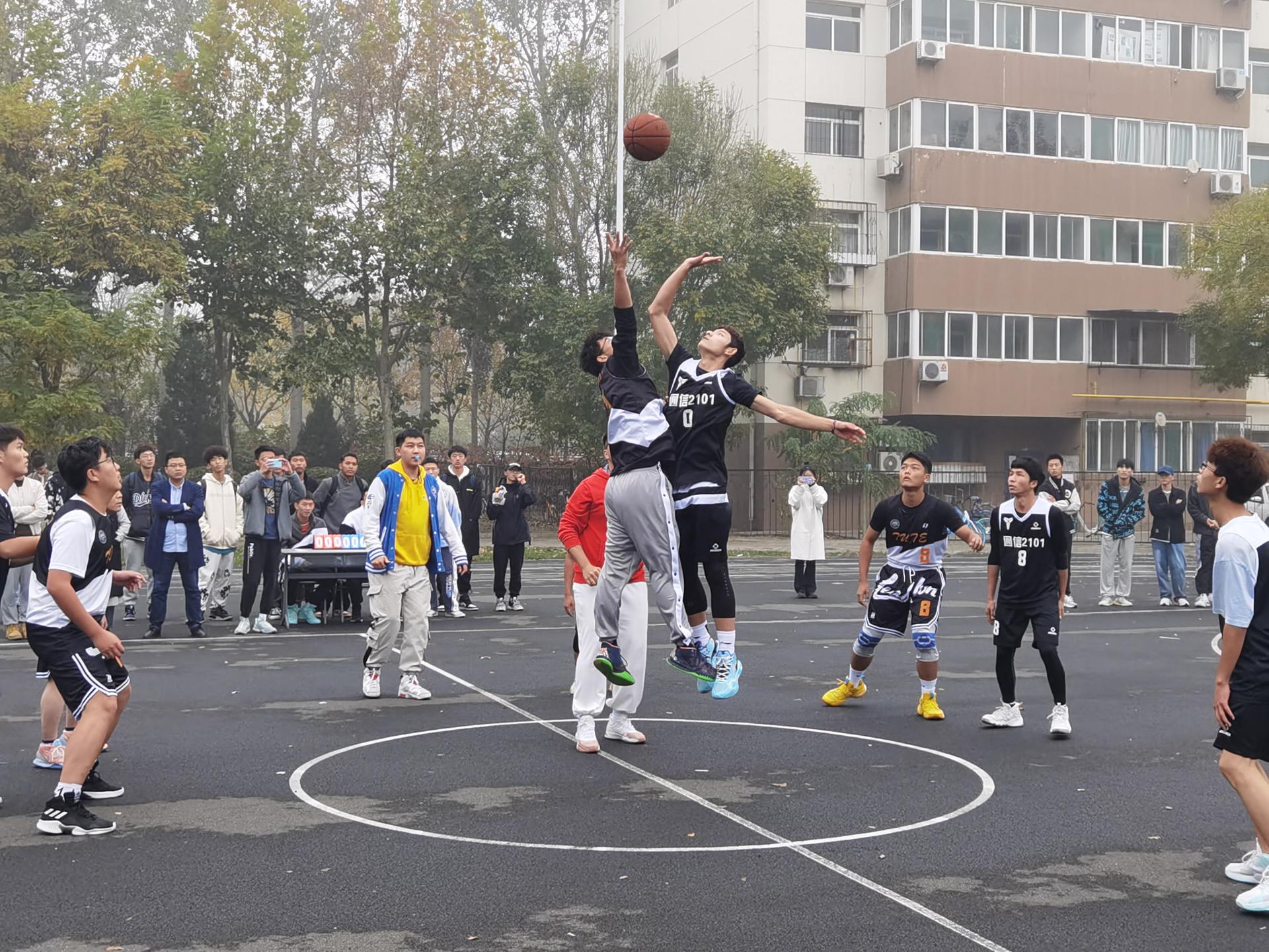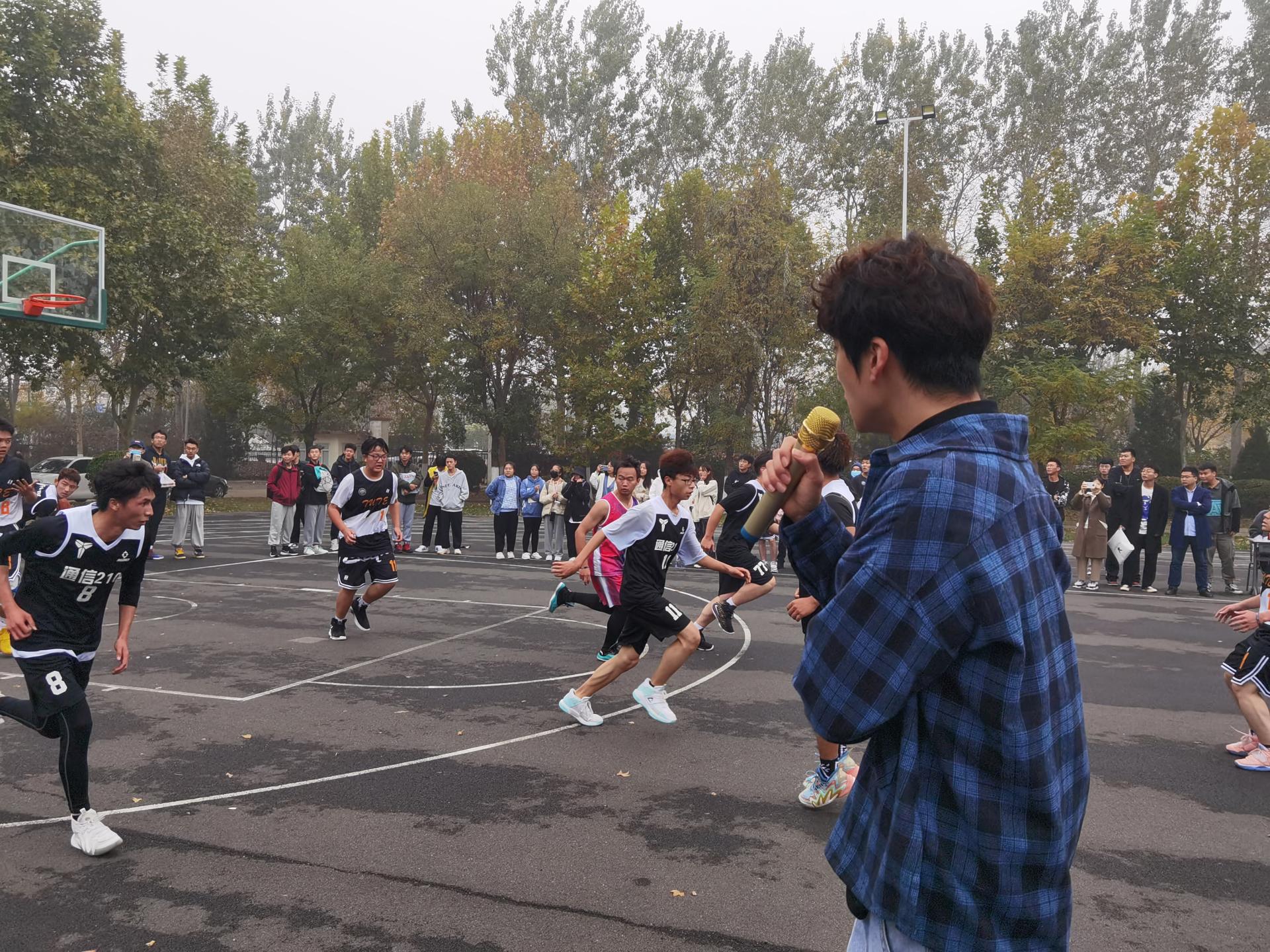 举办了2021级新生“微电杯”篮球比赛,面向15个新生班级进行小组赛、淘汰赛,最终电信2101班和通信2101班两支队伍进入决赛。11月3日,决赛拉开序幕,学院辅导员老师们莅临现场为队员们加油助威。