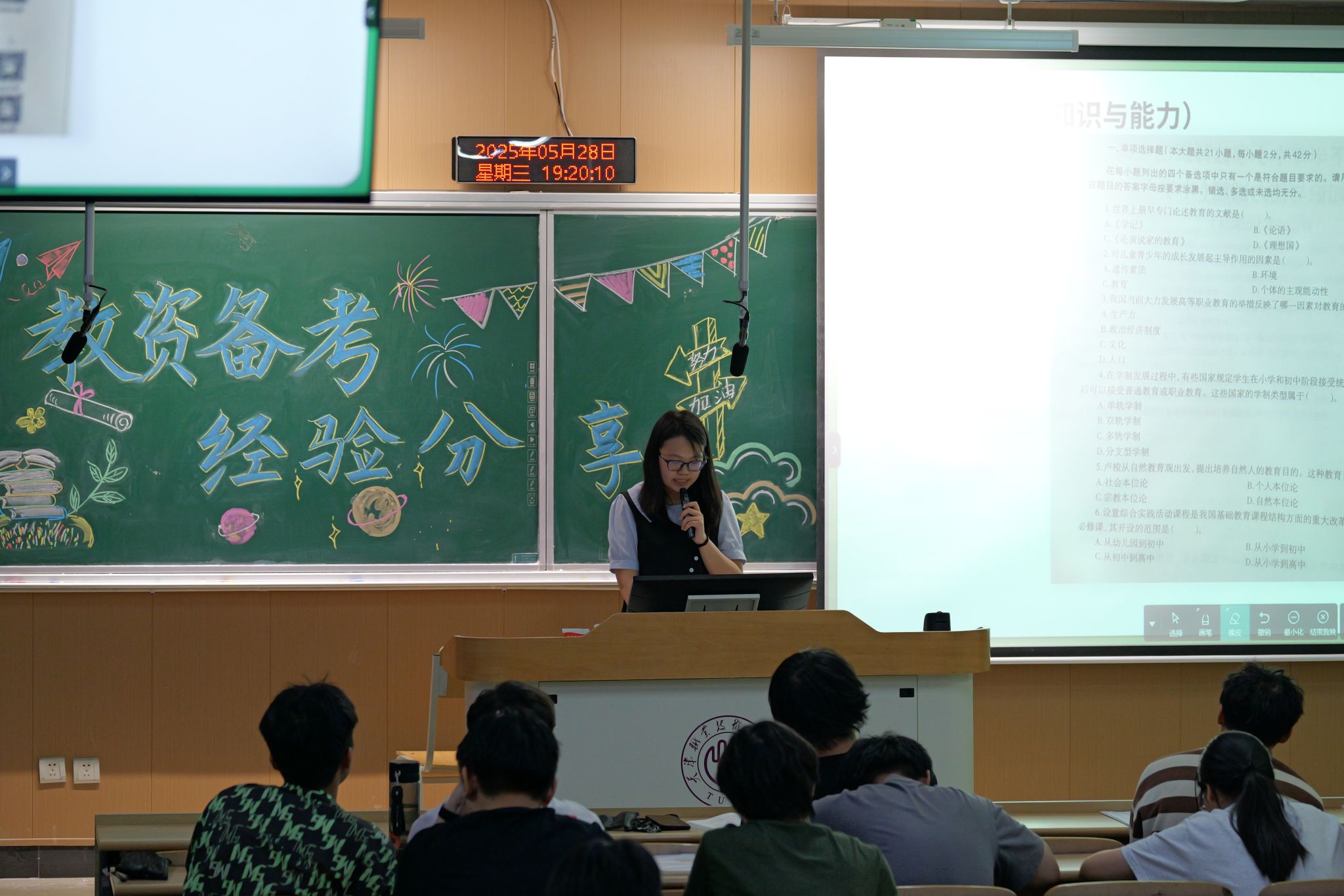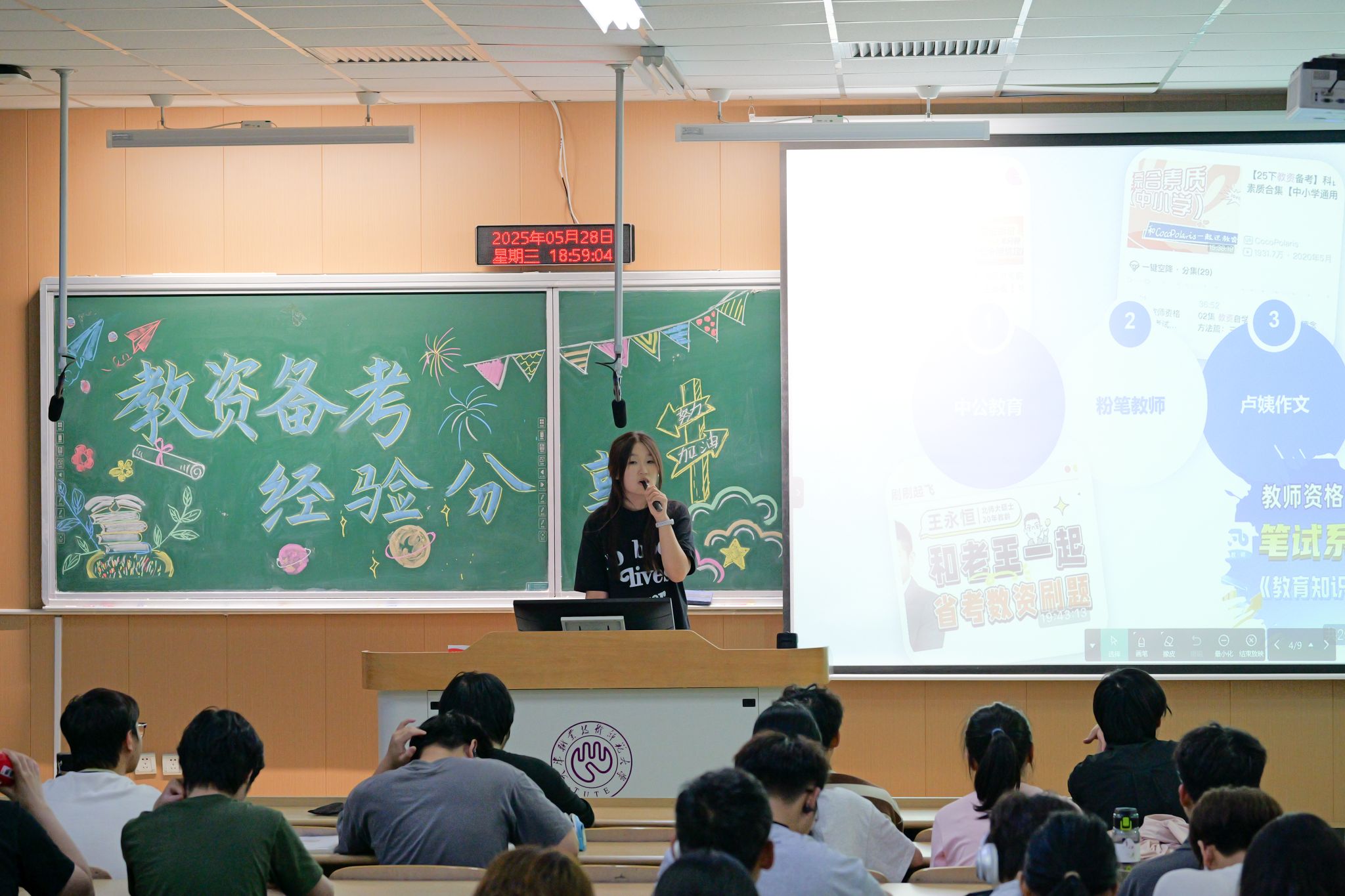 活动当天,同学们热情高涨,浓厚的学习氛围扑面而来。三位优秀的主讲嘉宾结合自身高分通过教资考试的宝贵经验,从多维视角展开深入浅出的分享,干货满满。