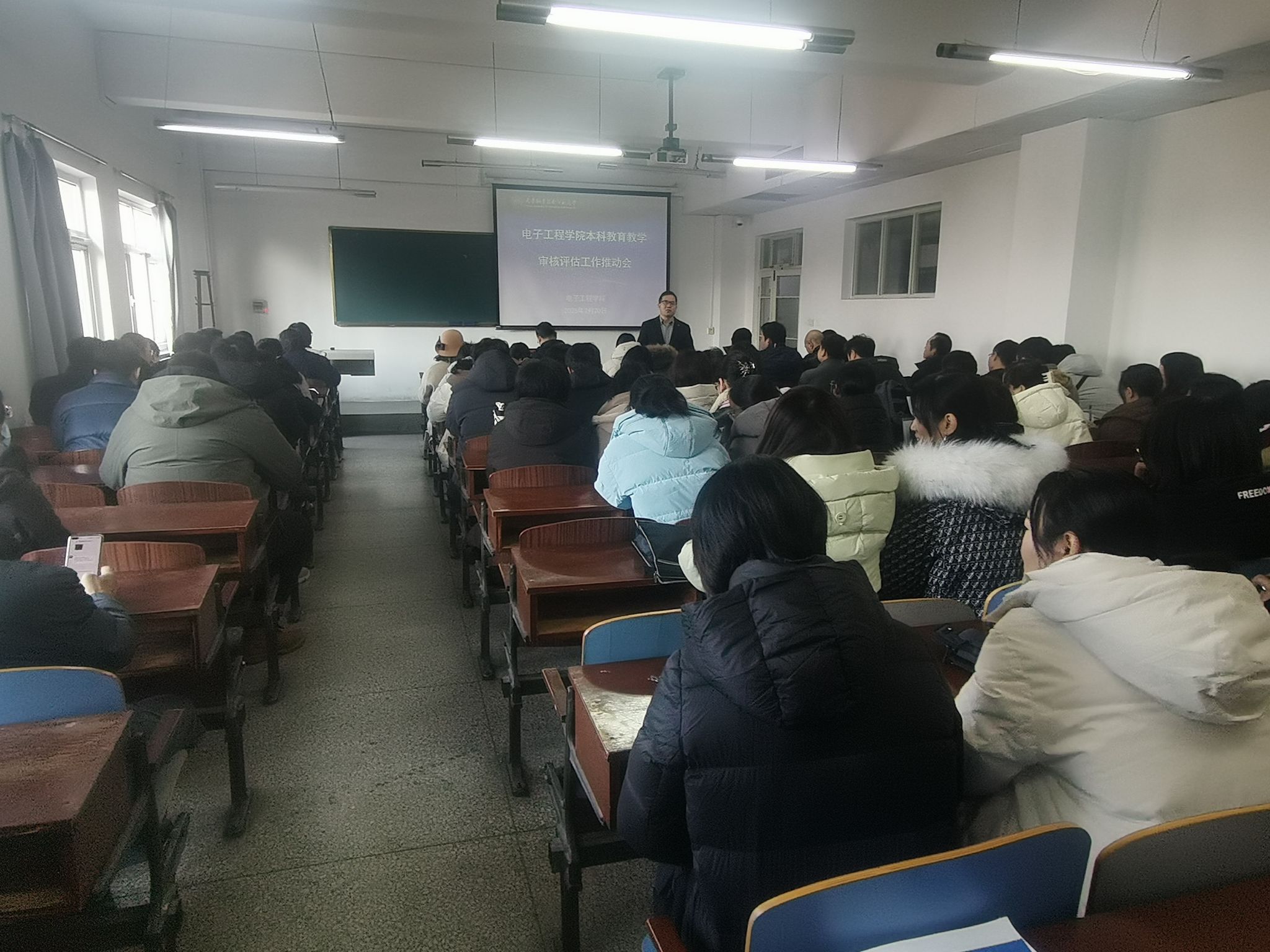 最后,李士心分别从审核评估基础工作、教风和学风建设以及时间安排几个方面提出具体要求。在审核评估基础工作方面,要注重加强理念和内涵方面的建设,学院大多数老师需要完善好教学大纲、试卷和毕业设计等方面材料,不要出现低级失误,抓好基础的教育教学工作是完成审核评估工作的关键。在教风和学风建设方面,他指出校领导提出三个方面的要求“以学生为主体、以产出为导向、持续推进”,要从宏观的方面认识本次评估工作,本次评估涉及到教育教学的方方面面,所有老师要以良好的精神风貌开展教育教学工作,尤其是在课堂授课时,要关注到所有学生,加强与学生的交流互动。在时间安排方面,全体老师要将工作前置,在3月底前完成关于评估的相关准备工作,正式的评估是5月份,先是开展线上评估,后进校评估,总体上而言时间比较紧张,全体老师要以昂扬的斗志和饱满的精神状态打赢这场攻坚战。