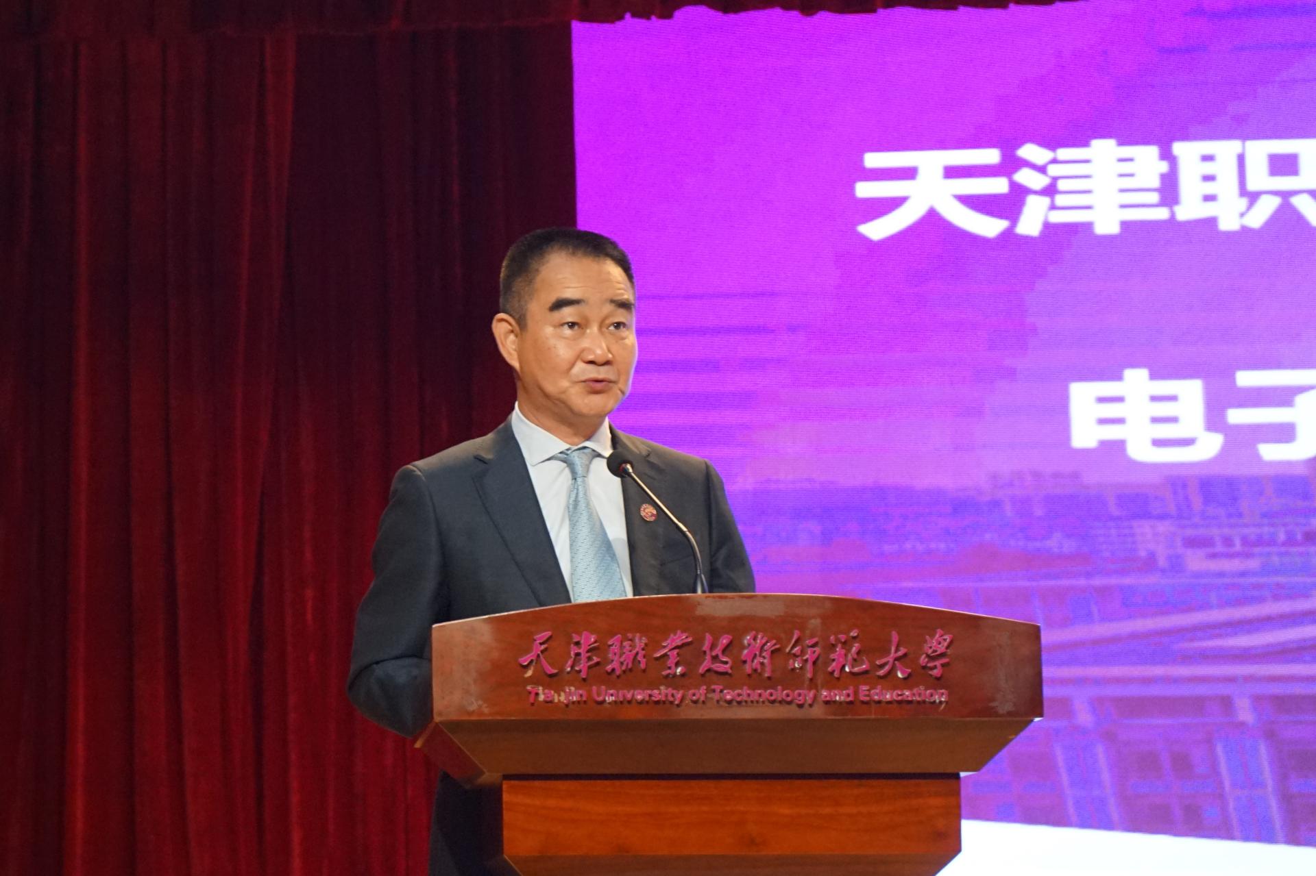 吕景泉在最后致辞中,首先对参加开学典礼的大西洋理工大学等相关部门的领导、老师以及电子信息工程专业的2023级全体新生表示热烈欢迎。随后,他从学校发展历史、专业设置、师资力量、教学水平、已取得研究成果等方面对学校进行了系统介绍。对全体新生提出了四点希望:第一,要有理想,胸怀“国之大者”;第二,要敢担当,厚植爱国情怀;第三,要肯奋斗,砥砺创新进取。并希望外方合作伙伴爱尔兰大西洋理工大学的同仁们继续致力于与天职师大一起,从教学质量、教学技术、教学资源以及人才培养方面进行深入交流合作,不断提升合作办学的层次和水平,以高质量的教学水平,将学生们培养成高素质高水平的人才。同时,他介绍了学校的中外合作品牌项目:鲁班工坊项目,表示愿与外方一起,加强跨国教育合作的沟通和交流,将天职师大的中外合作办学项目做成一流水平的中外合作办学标杆型项目。