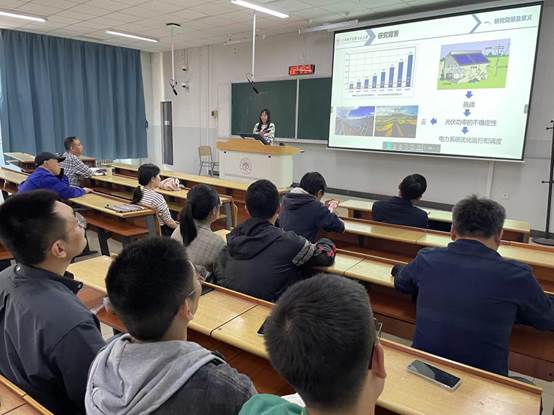 首先,姬五胜向大家介绍了刘亚男博士、李鑫博士的主要科研经历和成果。随后,刘亚男博士做题为《飞秒激光直写制备发光微纳结构》主题报告,从新型发光材料、常用集成方法优缺点和飞秒激光特点和应用为切入点,系统讲述了传统纳米半导体材料生长方式、集成方法、双光子吸收、各种二次过程的发生时间尺度、飞秒激光诱导离子价态变化等内容。李鑫博士做题为《基于地基云图的超短期光伏功率预测研究》主题报告,从地基云图的畸变校正、地基云图的云识别、地基云图的云运动腹肌、地基云图特征的提取与分析、光伏功率预测等方面进行详细讲解。分享结束后,两位博士都与现场的师生进行了交流,并耐心的给学生讲解他们不懂的地方,拓宽了学生的科研思路。