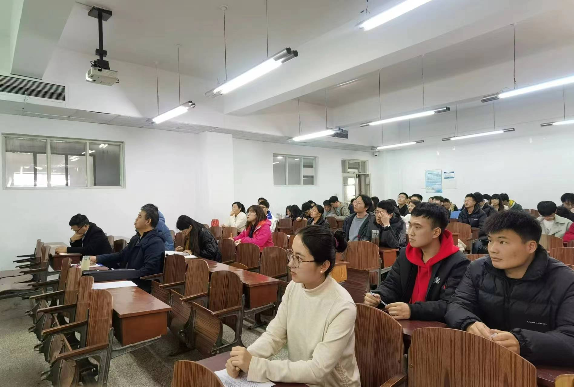 于机电楼520教室举办第二届硕士研究生学术沙龙活动。此次学术沙龙由2021级硕士研究生苏昊、尹荣国主讲,2023级研究生王彦彬主持,院长李士心、科研副院长姬五胜、导师代表、研究生秘书及全体研究生参加了本次学术交流活动。