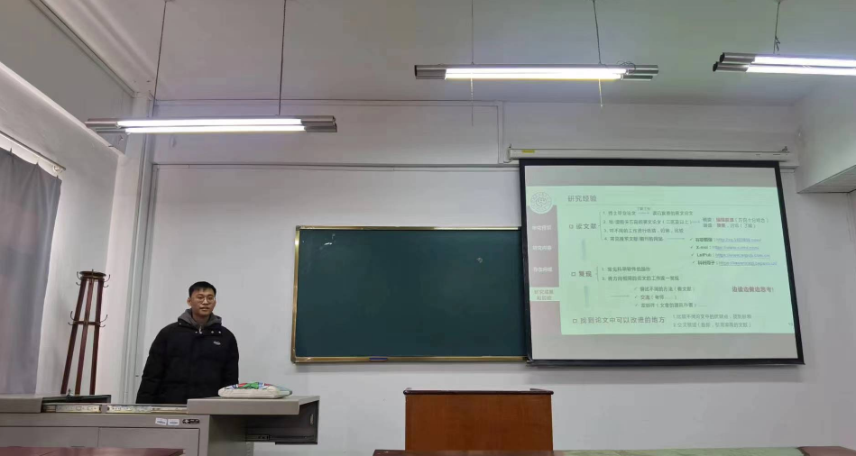 培养研究生的一大举措,是为了活跃学院学术氛围,进一步让同学之间增进沟通和交流,加强分享和合作,以便激发学术热情和创新思维,提升同学们的学术素养。他希望,各位同学向两位学长学习,把握好现在的时间,沉下心来专注学习、科研;同学们要珍惜难得的学术交流机会,广泛交流,开拓视野,启迪智慧。
