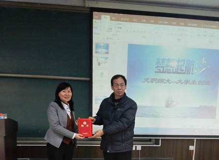 学院邀请到天津光电集团有限公司助理主任王玮平作为主讲,王玮平通过一历历小故事对从大学生创新创业的优势劣势、关键条件、主要挑战进行讲解,深入浅出,并以及自身创业创新的感受向学生传授创业经验,在场学生认真聆听,气氛积极。随后,电子科学与技术系主任倪晓昌,从电科和光信专业课程的教学资源和教学过程等方面进行详细介绍,结合课程和时代特点讲解专业的特色,让学生更加了解专业,热爱专业。学院正式聘任王玮平为企业合作导师,张军代表学院为其颁发了聘书。