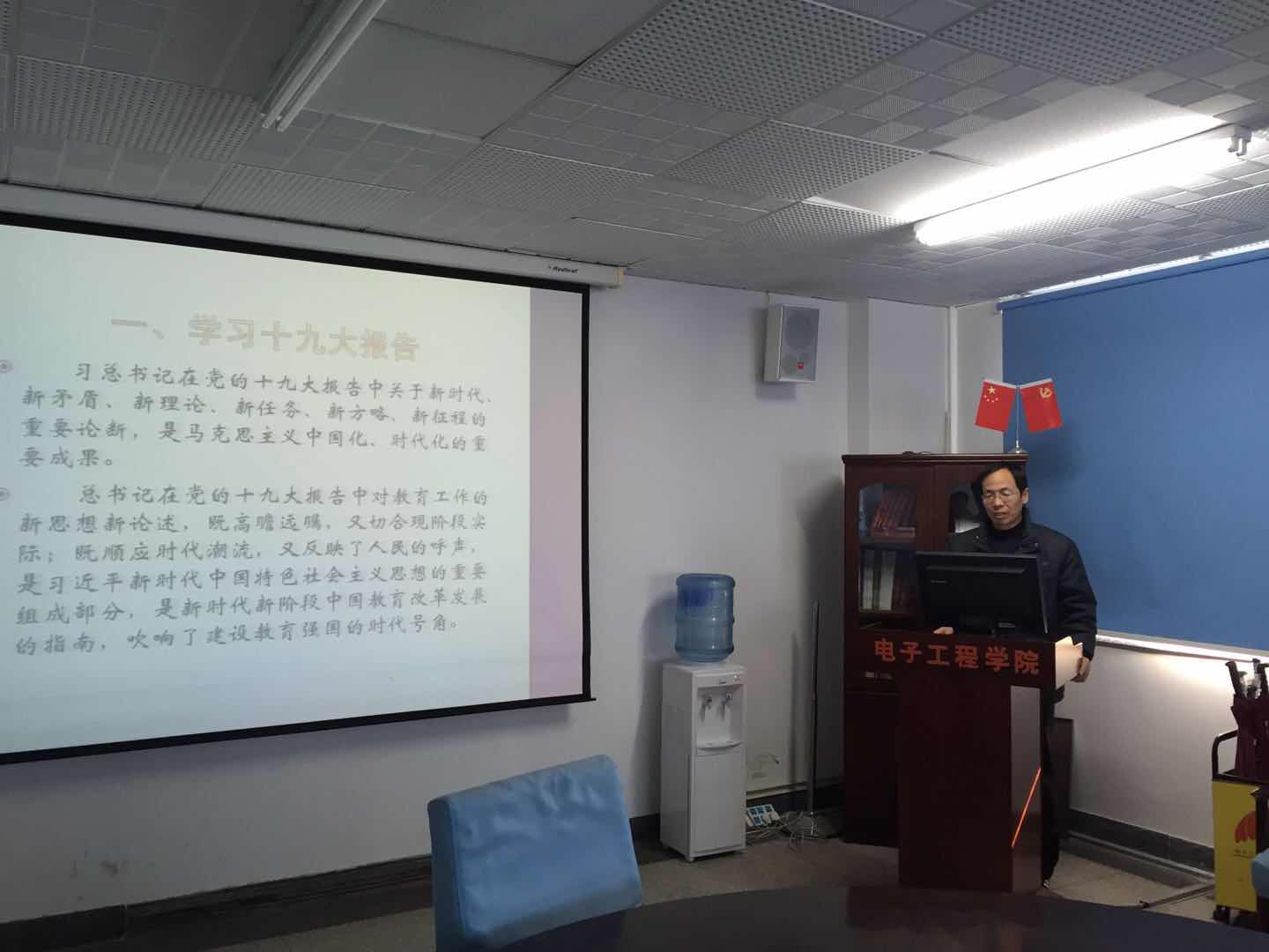 院党委书记李春华为学生党员、全院教师分别作了十九大精神宣讲,院党委副书记刘娜为全体学生党员以及党支部讲授党课。院长张军结合学科建设和业务专业以“学习十九大报告结合本职工作谈体会”为题为全院教师讲党课。他表示要把学习宣传贯彻党的十九大精神作为学院当前和今后一个时期的头等大事和首要政治任务,习近平总书记在党的十九大报告中关于教育工作的新思想新论述,既高瞻远瞩,又切合现阶段实际;既顺应时代潮流,又反映了人民的呼声,是新时代新阶段中国教育改革发展的指南,吹响了建设教育强国的时代号角。