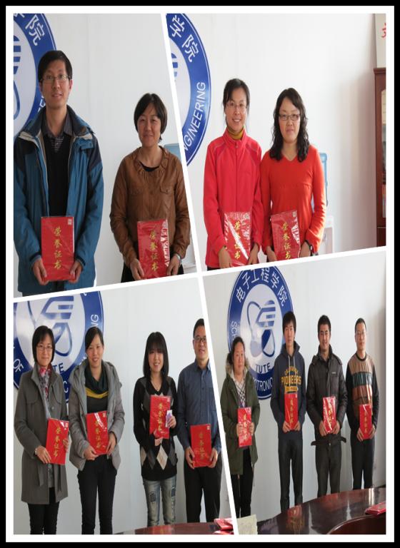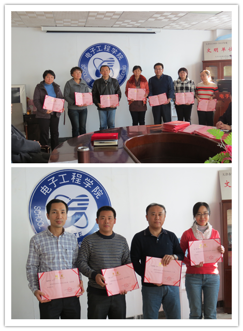 同时,为进一步提高青年教师课堂教学质量和水平,不断推进青年教师队伍建设,根据《关于在教学单位开展青年教师岗位练兵活动的通知》(津职师大工发〔2013〕8 号)文件要求,电子学院2013年青年教师教学基本功竞赛于9月22日~26日在学院各部门进行初赛,各部门推荐17名优秀青年教师分两组参加了10月29日的决赛。经现场打分,最终分别评出一等奖2名、二等奖2名、三等奖3名、优秀奖10名。本周,学院为获奖的教师颁发了证书。学院将从获奖人员中选出代表,推荐参加成人用品