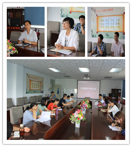 在机电楼326会议室召开“争做四有好教师”教师节主题座谈会。学院领导班子成员、2015级新生班主任及新入职教师参加了座谈。座谈会由院党委书记李春华主持。