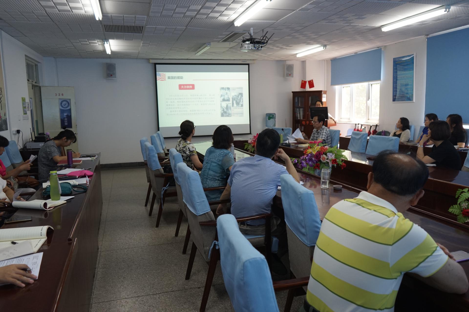 张鸿秋围绕“不忘初心,牢记使命——接续奋斗新时代”向大家介绍了主题教育内容及其重大意义,鼓励教师们要努力掌握“看家本领”,贯彻教育的本意——立德树人,并号召大家切实践行主题教育,增强责任感和紧迫感,提高主题教育的质量。王晓霞以“历史和人民选择了中国共产党”为主题,从国民党与共产党在军队实力、思想建设、作风建设及党政军关系等方面进行对比,向大家阐述了在国民党军队实力更胜一筹、形势大好的情况下,中国共产党取得最终胜利的原因以及为什么要坚持中国共产党的领导。中国共产党成立之初,就始终坚定理想信念、把为人民群众谋幸福作为自己的使命。两位教师准备充分,讲解生动,深入简出,受到一直好评,学院教师纷纷表示受益匪浅,同时决心要坚定理想信念,忠诚党的教育事业。