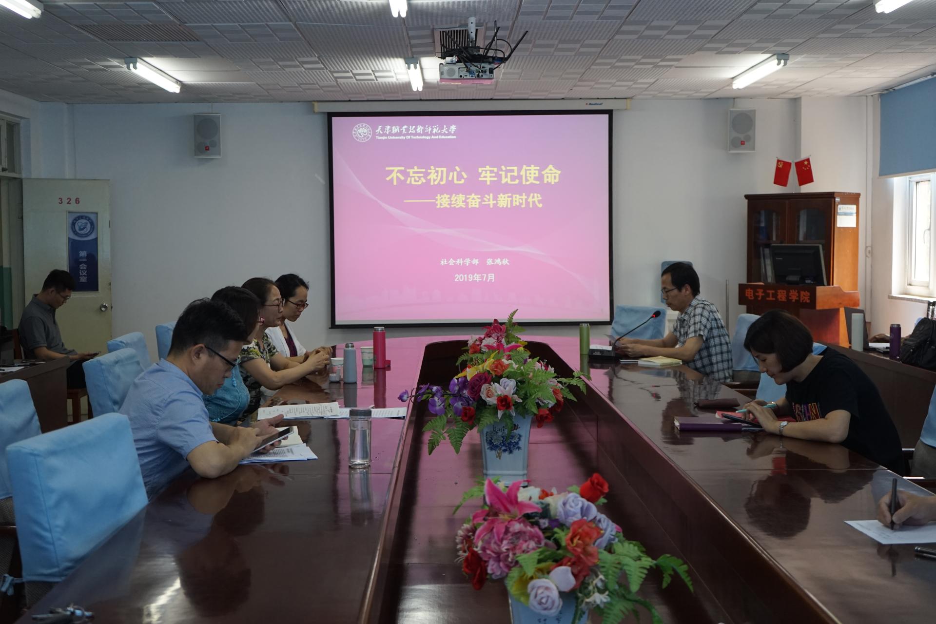 全体教师开展主题党课教育,坚定教师理想信念,学院领导班子成员以及全体教师参加。