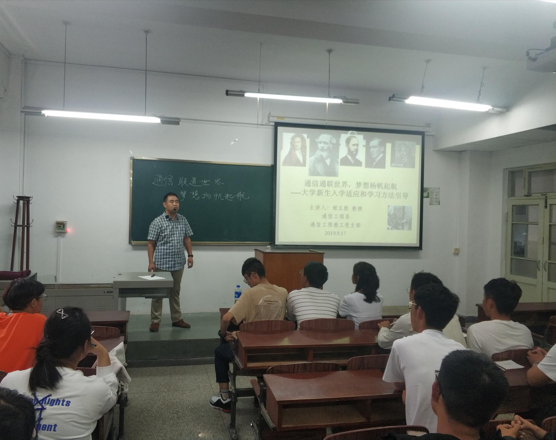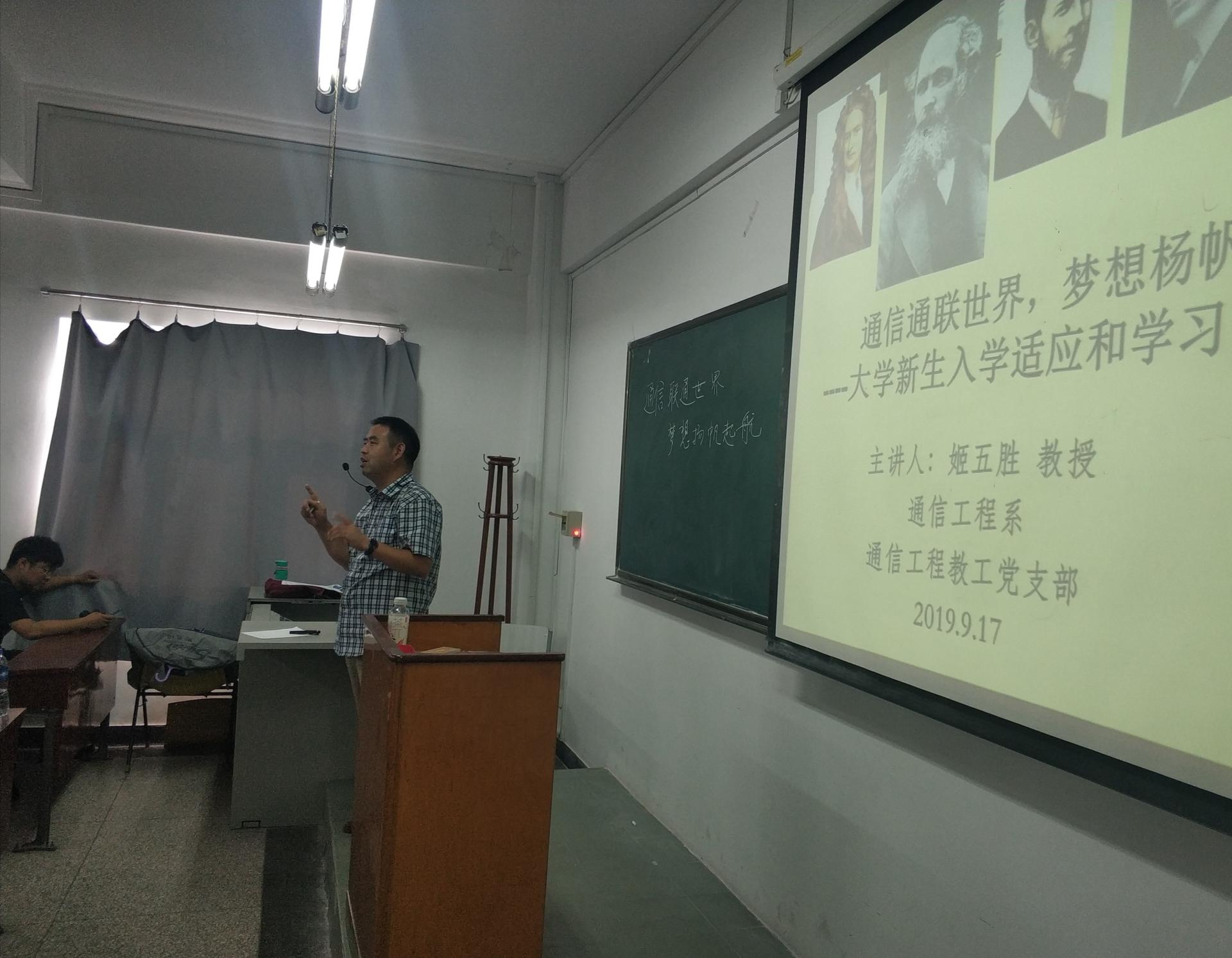 通信工程教工党支部面向2019级通信专业全体新生开展了以“通信通联世界,梦想杨帆起航——大学新生入学适应和学习方法引导”为主题的讲座,本次讲座由通信教工党支部书记姬五胜老师主讲。