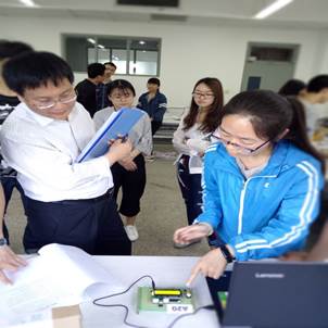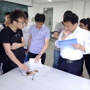 团委5月7日在机电楼515举办 “电子杯”设计竞赛,比赛邀请到电子信息工程系郝彬老师和电子科学与技术系倪晓昌老师担当评委。