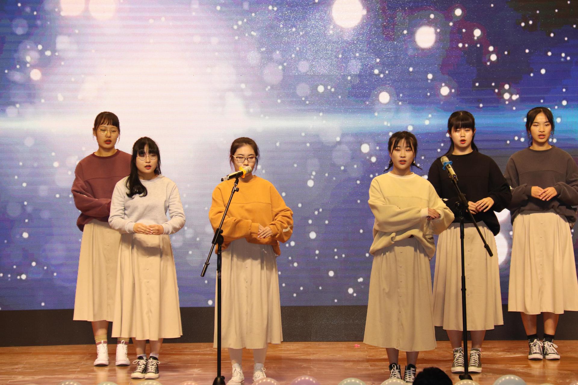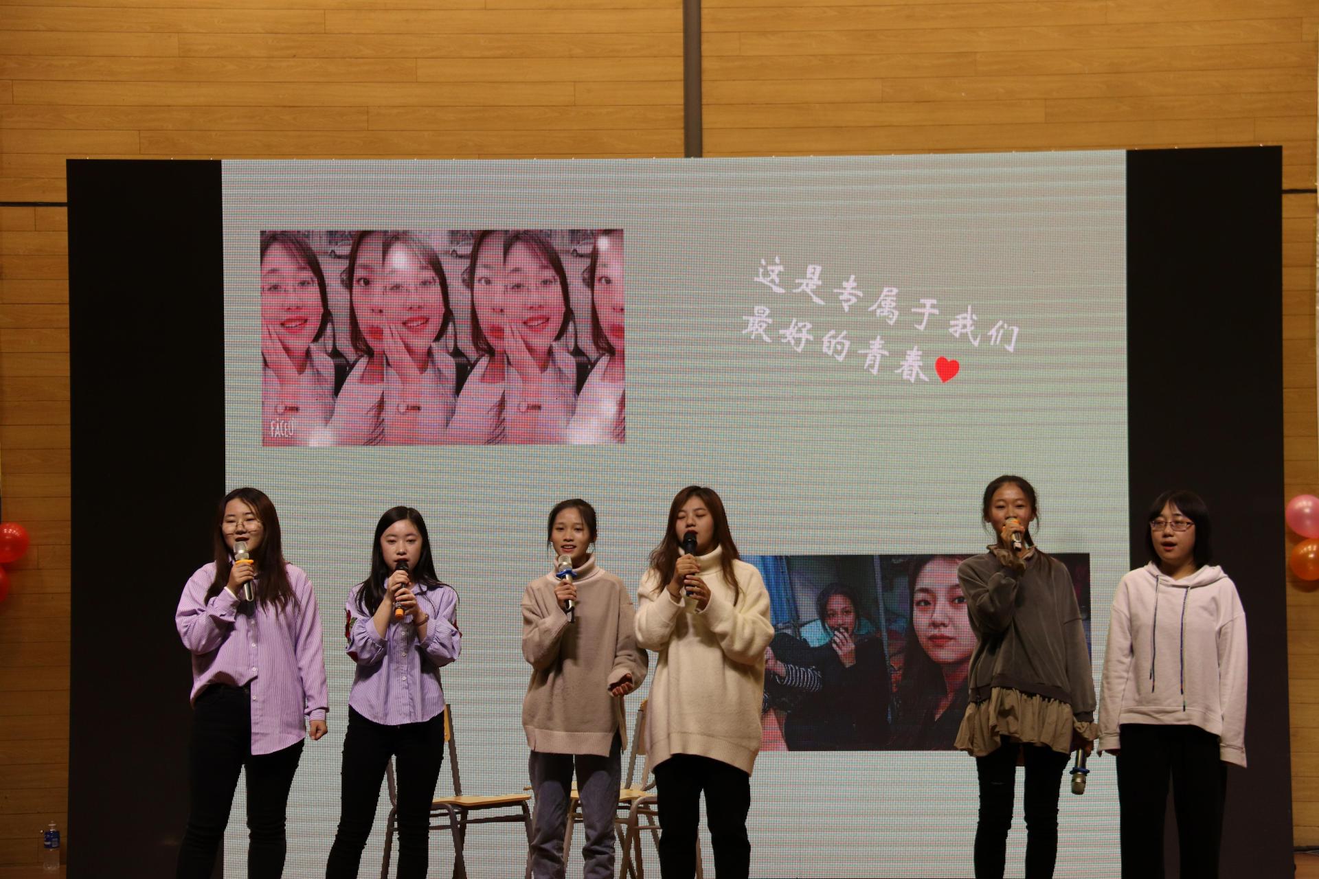 中场游戏环节,两位2019级辅导员老师与同学们共同参与比赛,现场欢乐不断,高潮迭起。短暂休息过后,1号楼204宿舍带来的歌舞串烧《SunnyFloral》再次点燃全场的热情;13号楼1101、1017、1110、1108宿舍合作带来歌曲串烧《关于青春》,以幽默的表演方式演绎深情动听的旋律,将本次活动推向又一个高潮;一曲大气嘹亮的《故乡保吉》,藏族少年维色托美以醇厚的嗓音向同学们展现了家乡的美好;314宿舍带来的朗诵《青春与理想》,深情激昂,情感真挚,令不少同学为之共鸣;312宿舍原创小品《青春校园》,生动刻画大学生的多彩校园生活。最终,晚会在团委老师们深情动人的歌曲《相亲相爱一家人》中落下帷幕。