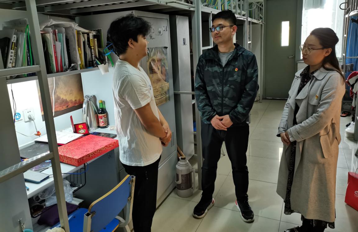 54日上午,院团委书记李强、辅导员袁林首先来到13号学生公寓看望前不久捐献造血干细胞的李孝晨同学,详细了解他身体恢复情况和学习生活情况,转达学校、老师对于他的关心和慰问。
