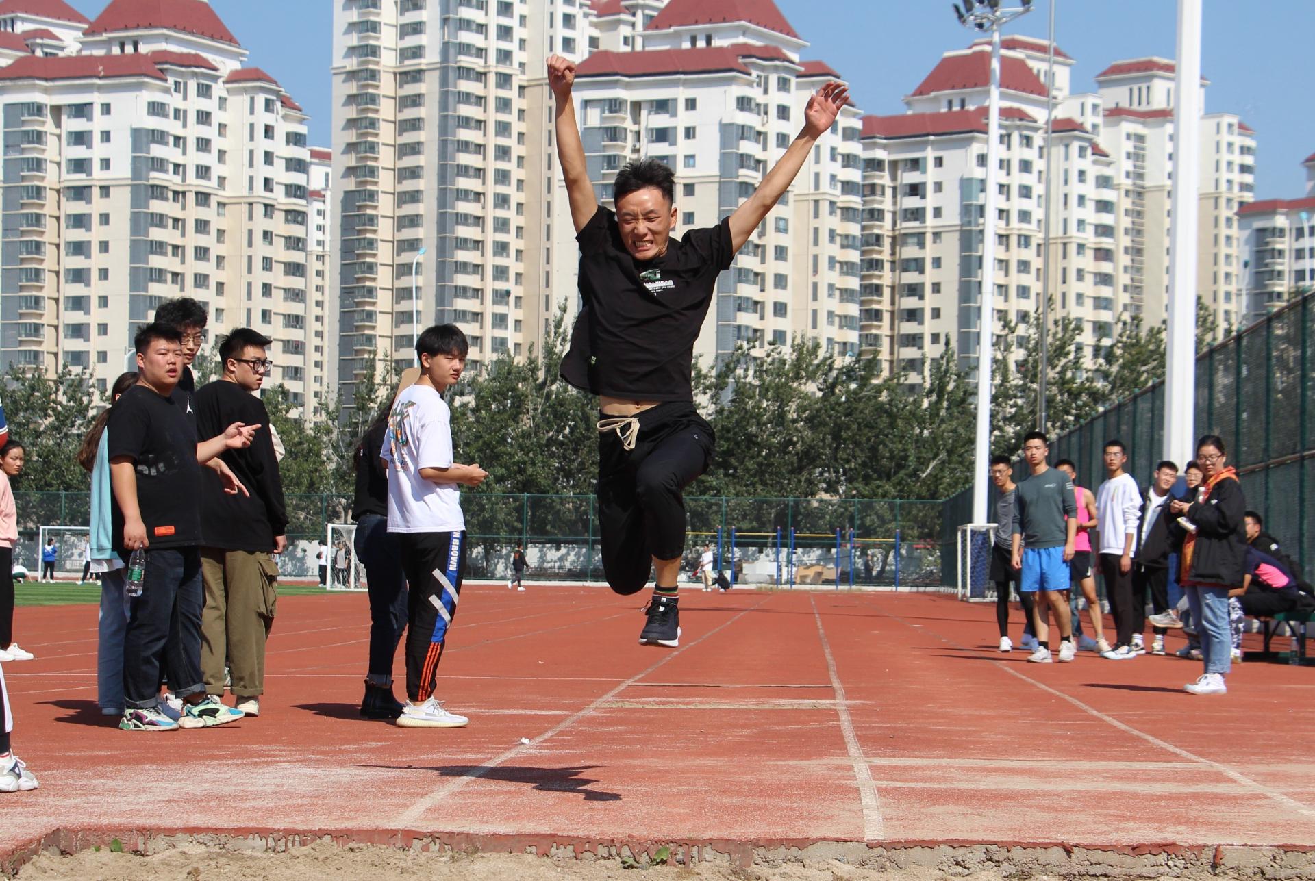 比赛第一天的项目有100米短跑、200米短跑、400米短跑、实心球、跳远、铅球等,每一个项目的比拼都让在场加油的同学移不开眼, 1500米长跑的比拼更是振奋人心。