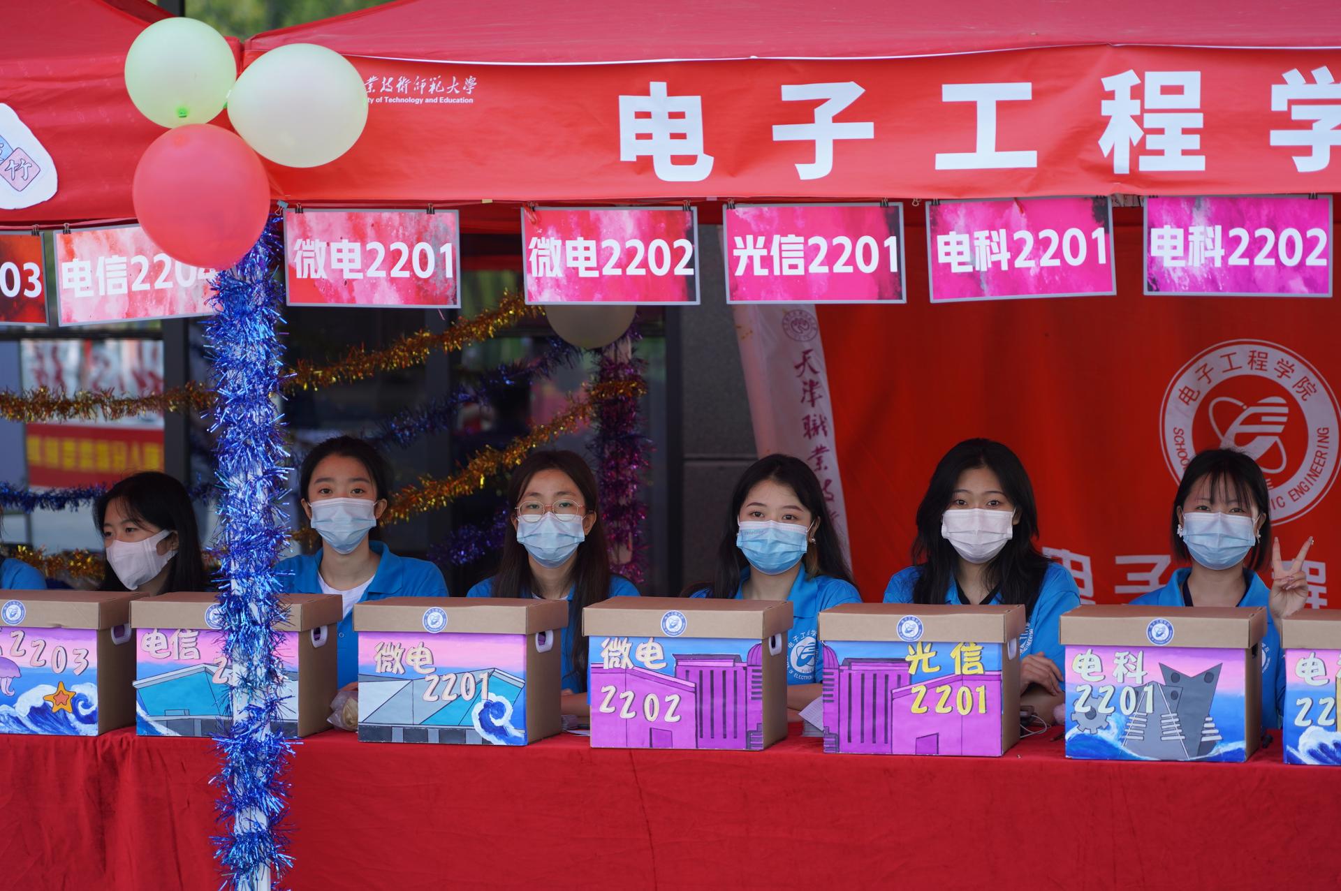 体育馆报到处,“电子‘芯’·向未来”——以学校成就与天津发展相结合的主题迎新箱映入眼帘,给予了电子“小萌新”们最美好的祝愿!16个手绘纸箱连成一排,从海河巨浪到红船领航,从天津之眼到解放桥,生动形象地将天津在机遇中发展、在传承中创新展现的淋漓尽致,同时,与学校致力于培养“中国制造卓越雕塑师”、打造“工匠之师”的理念不谋而合。从“制造”到“创造”,从“追赶”到“领航”,一如手绘中展现的那样,也不断激励“小萌新”们珍惜大学时光,砥砺奋斗,踏歌而行。