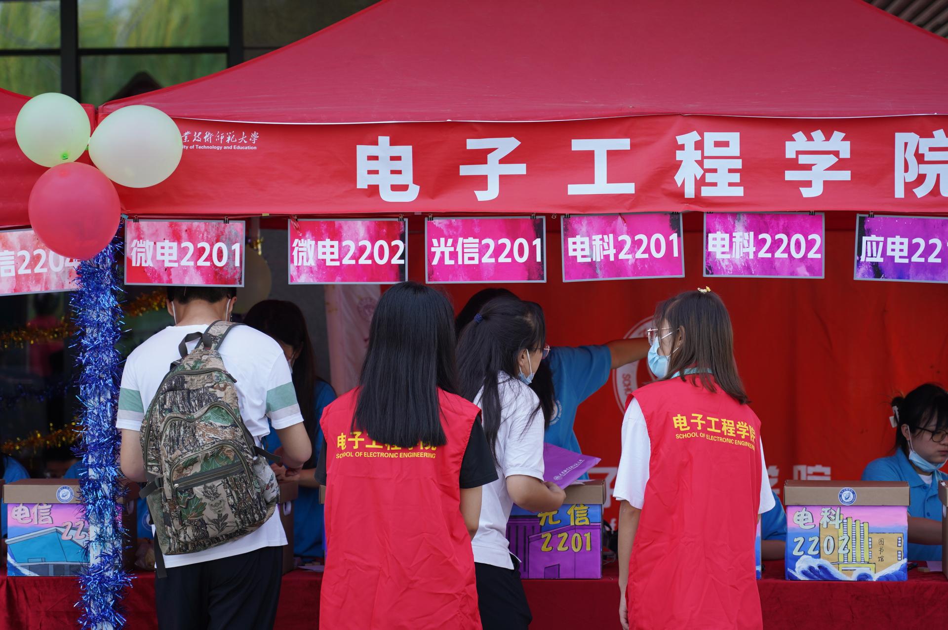 学院学生会成员及助理班主任们在迎新工作中积极主动,引导每一位电子“小萌新”顺利领取饭卡,文件袋、暖心卡片、学生手册、校徽……新生大礼包充满无限的惊喜。