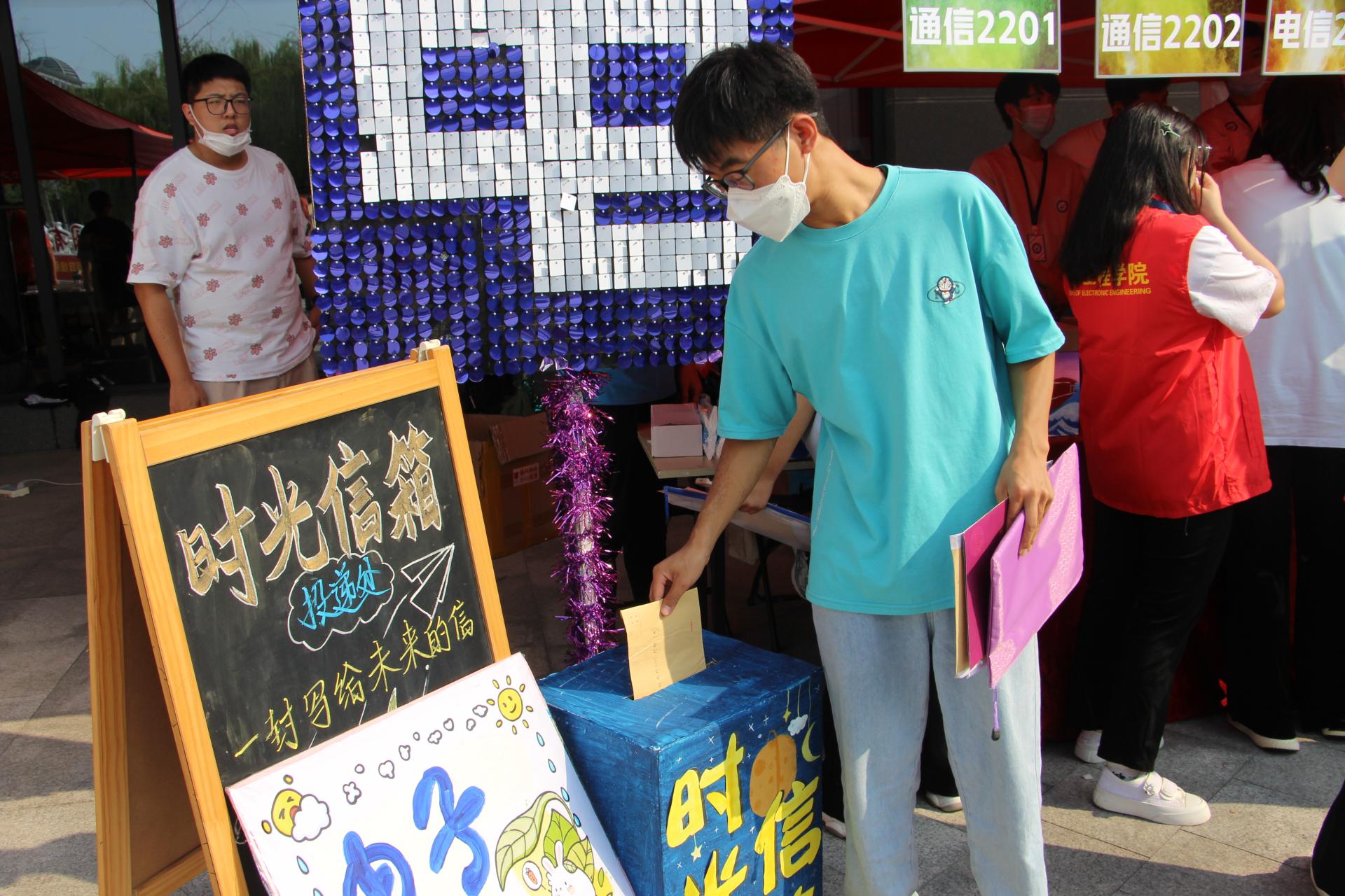 时光信箱的开设引来了很多新生的驻足围观,大家都对给未来的自己写一封信充满了好奇,很多新生郑重而认真的在信箱前面进行投递,或许,等他们几年后再看到这封信的时候,还能回忆起最初的美好和最真挚的初心。学院还贴心的为新生们准备了一枚刻着对未来期许的小小书签,希望能够陪伴他们拥抱全新的大学时光!