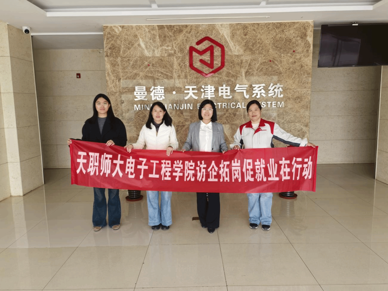 4月3日上午,学院党委副书记韩娣,辅导员罗芳、吴婧怡一行,在天津经济技术开发区人力资源和社会保障局人力资源供给保障科刘悦同志协助对接下,赴曼德电子电器有限公司、天津三星电机有限公司走访交流。在曼德电子电器有限公司,人事经理孟力然热情接待学院一行,双方围绕企业岗位设置、学院人才培养方向等内容开展座谈交流。在天津三星电机有限公司,人事专员张静接待学院走访团队,校企双方就毕业生就业对接、职业发展等进行探讨。韩娣一行还走进两家企业车间,了解岗位实操,精准掌握企业用人需求。